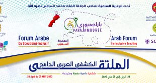 تحت الرعاية السامية لصاحب الجلالة الملك محمد السادس نصره الله وأيّده، تنظم الجامعة الوطنية للكشفية المغربية التي تحظى برئاسة صاحب السمو الملكي الأمير الجليل مولاي رشيد، فعاليات:الملتقى العربي الكشفي الدامج (الباراجمبوري2) والذي سينظم بتعاون وشراكة مع كل من وزارة الشباب والثقافة والتواصل ووزارة التضامن والأسرة والإدماج الاجتماعي وجهة الرباط سلا القنيطرة …
