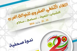 بلاغ صحفي تحت الرعاية السامية لصاحب الجلالة الملك محمد السادس نصره الله تنظم الجامعة الوطنية للكشفية المغربية التي يترأسها الأمير الجليل مولاي رشيد وبتعاون مع وزارة الشباب والرياضة والمنظمة الكشفية العربية اللقاء الكشفي العشرون للجوالة العرب تحت شعار ” الشباب : تنمية…تسامح …سلام “ وذلك خلال الفترة المتراوحة مابين 12 و21 ...