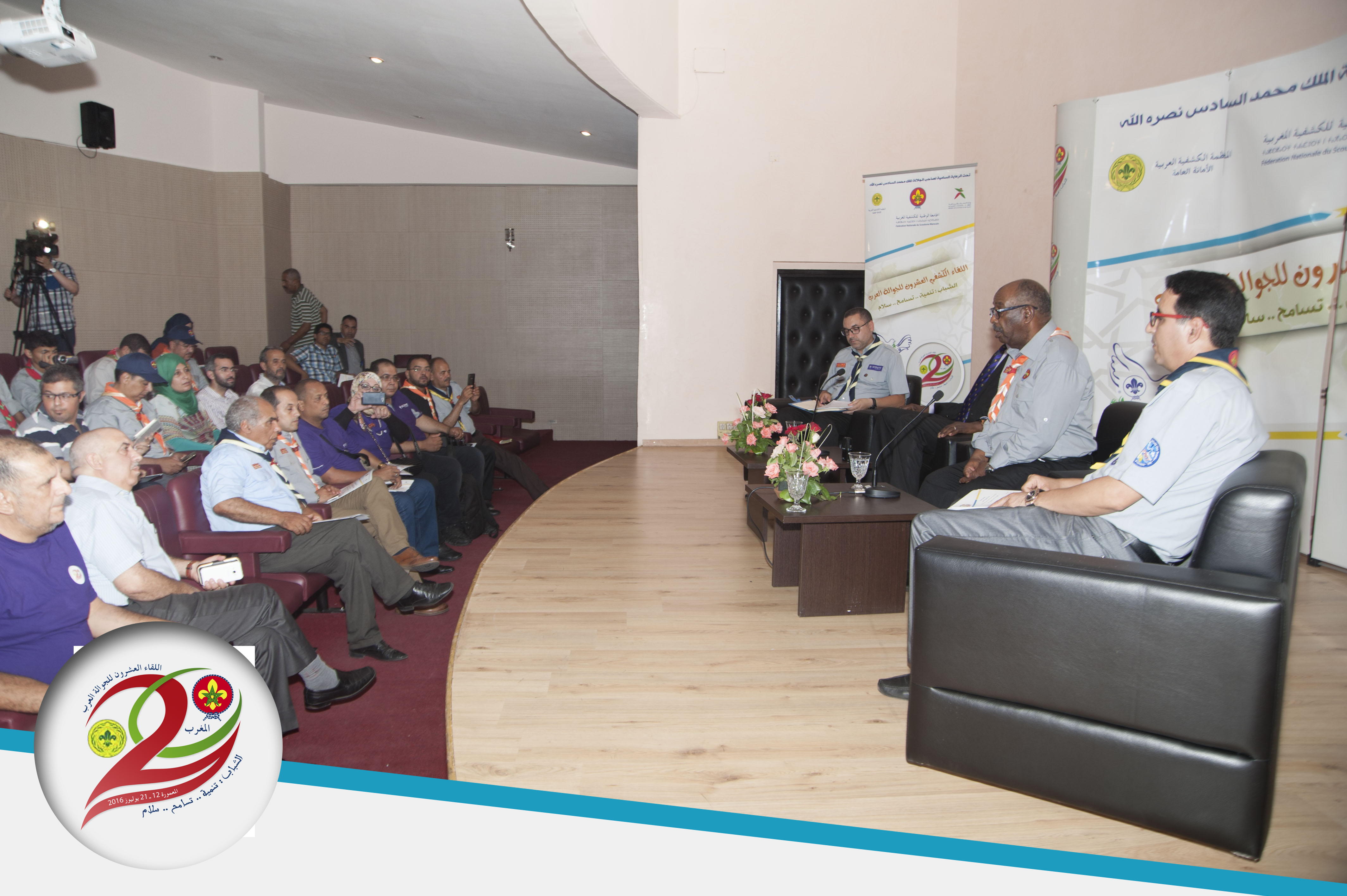 فبعد الترحيب بالحاضرين والتنويه بالمبادرة الملكية المتمثلة في الرعاية السامية لصاحب الجلالة الملك محمد السادس للقاء، تم تقديم نظرة موجزة عن ظروف عقد هذه التظاهرة والمشاركة العربية المتميزة فيها ( 500 شاب عربي من ازيد من عشر دول عربية )، ليتم بعدها اعطاء فكرة عن برنامج هذه التظاهرة العربية الهامة التي تصادف احتفالية الرباط كعاصمة للشباب العربي ، وما يتضمنه برنامجها من أنشطة متنوعة تتمثل في الندوات والمناظرات والرحلات الاستكشافية والمسابقات الثقافية والرياضة والحفلات والسهرات الكشفية مما سيساهم لا محالة في تقوية العلاقات بين الشاب المشارك واتاحة الفرص لاكتساب خبرات ومهارات وصقل المواهب وتنمية القدرات لما في خير امتنا العربية ، وكان لتدخلات ممثلي المنابر الاعلامية الحاضرة في ختام المداخلات دور في إثارة مجموعة من المواضيع التي ساهمت في ابراز دور الحركة في تاطير الشباب واعداده لبناء الاوطان بما يتطلبه الأمر من علم وتشبت بالمبادئ والقيم النبيلة ، وهو ما تحرص الكشافة بغرسه في انفس المنتسبين اليها من خلال طريقتها المتميزة ..